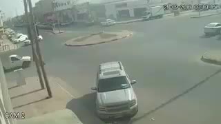 يظهر الفيديو الذي تداوله مستخدمو مواقع التواصل الاجتماعي، لحظة اصطدام سيارة تسير بسرعة عالية بسيارة كانت تسير ببطء أمامه.