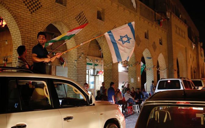 وأظهرت رفع شباب أكراد للعلم الإسرائيلي إلى جانب علم كردستان وصور رئيس الإقليم المنتهية ولايته مسعود البارزاني، في حادثة هي ليست الأولى من نوعها.