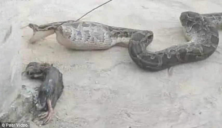 أمسك أهالي قرية صينية بالثعبان يسرق الماشية بينما تنتفخ بطنه بالدجاجة والبطة وذلك وفقا لما نشرته صحيفة "ديلى ميل" البريطانية، واضطر الثعبان المحاصر والمربوط بالحبال إلى قذف ضحاياه من فمه مرة أخرى. بلغ وزن الثعبان الذي عثر عليه 19 كيلو جرام، واصطحبه المسئولون عن الغابات المحلية بعيدا عن أهالي القرية الذين صوروا الحدث بهواتفهم النقالة.