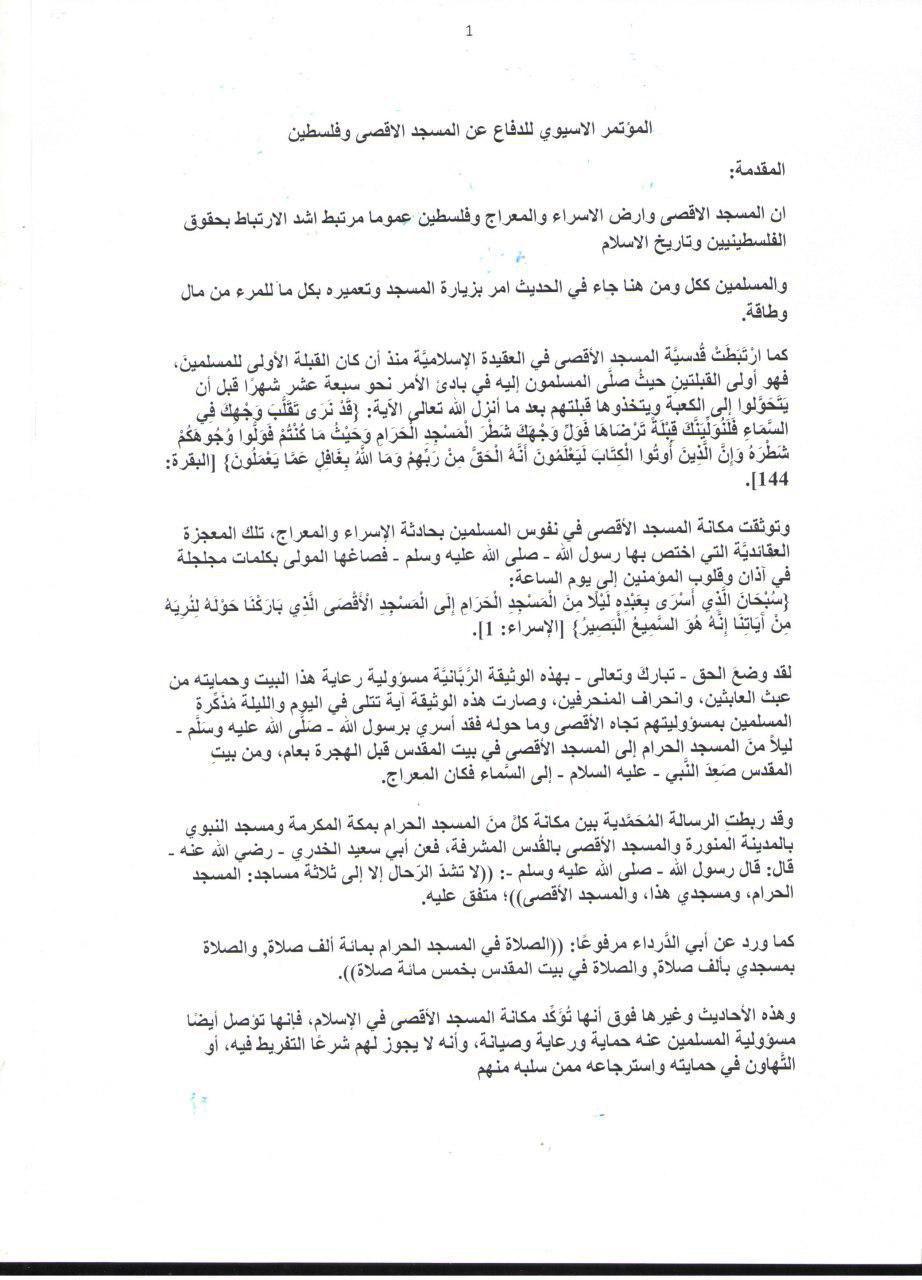 1- دعم القضية الفلسطينية لتبقي القضية المركزية للامة