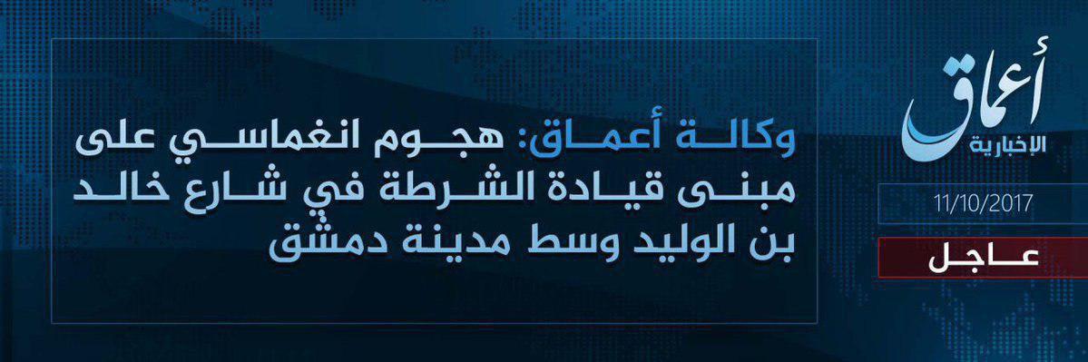 وأفادت المصادر نقلاً عن وزارة الداخلية السورية ان إرهابيان إنتحاريان حاولا اقتحام قيادة الشرطة في شارع خالد بن الوليد" في وسط دمشق.