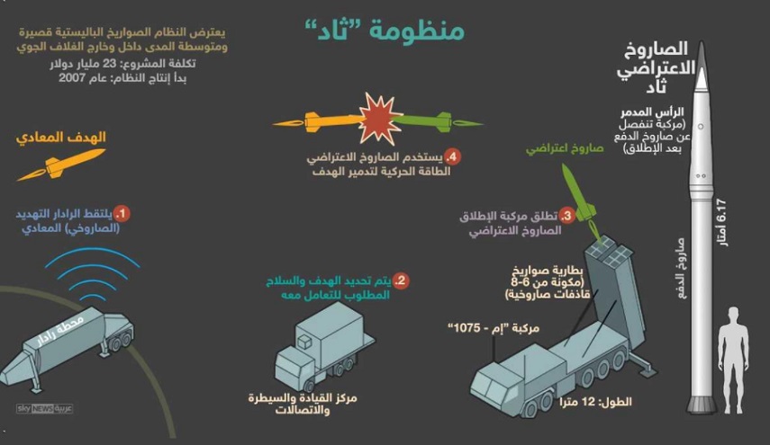وأما عن نظام ثاد فهو منظومة دفاع جوي صاروخي من نوع (أرض- جو) يستعمل من قبل أمريكا وعدد من حلفائها، من المكونات الرئيسية لنظام الدفاع ضد الصواريخ البالستية المصمم لحماية القوات الأمريكية وحلفائها والمناطق الرئيسية المأهولة والبنية التحتية الأساسية.