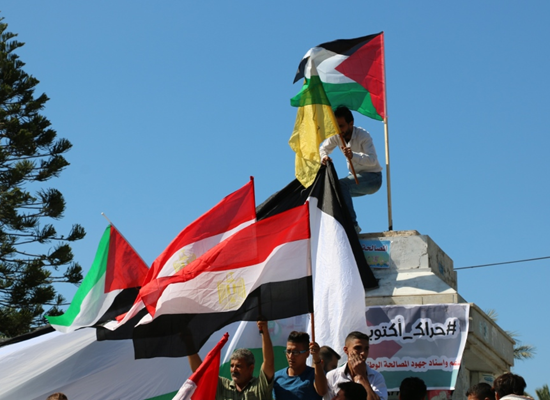 وأشادت الجماهير بالجهود الذي بذلتها كل من حركة حماس وفتح ومصر والتي أثمرت عن اتفاق ينهي الانقسام ويحقق الوحدة الفلسطينية.