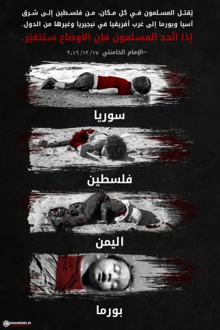 إذا اتحد المسلمون فلن يكون وضع فلسطين على ما نشاهده اليوم. إن وضع فلسطين اليوم وضع صعب، فالشعب الفلسطيني يتعرض لضغوط يومية شديدة في غزة بشكل وفي الضفة الغربية بشكل آخر. يريدون إبعاد قضية فلسطين عن الأذهان والدفع بها نحو النسيان. منطقة غرب آسيا - والتي تضمّ بلداننا هذه - وهي منطقة حساسة واستراتيجية للغاية سواء من الناحية الجغرافية أو من حيث المصادر الطبيعية أو من حيث المعابر البحرية، إنها منطقة حساسة، يريدون أن يشغلوا هذه المنطقة بنفسها، وأن يقف المسلمون في وجه المسلمين، والعرب ضد العرب، فيستهدفوا بعضهم البعض ويقضي بعضهم على بعض. يريدون لجيوش البلدان الإسلامية، وخصوصاً جيوش البلدان المجاورة للصهاينة أن تؤول إلى الضعف يوماً بعد يوم. هذا هو هدفهم.