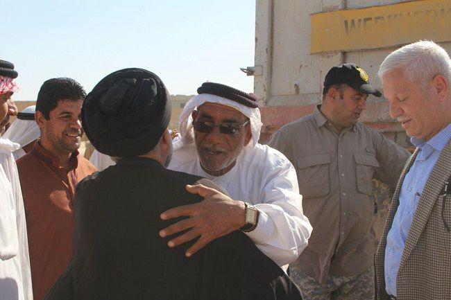 والقى بعض الاهالي اشعارا واهازيجا وكلمات تعبر عن عمق المحبة والتكاتف بين العراقيين وقال احد الاخوة من قرية حوض سبعة قرية ناظم العاصي : بان سماحة السيد السيستاني اعطى للعراقيين وللعالم درسا بليغا في التعايش السلمي ونبذ الطائفية المقيتة..