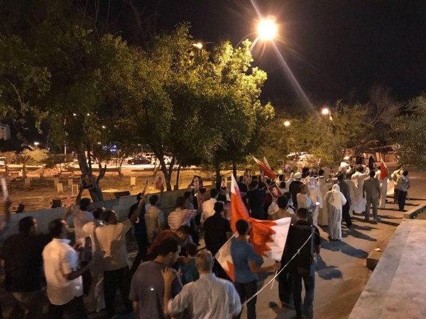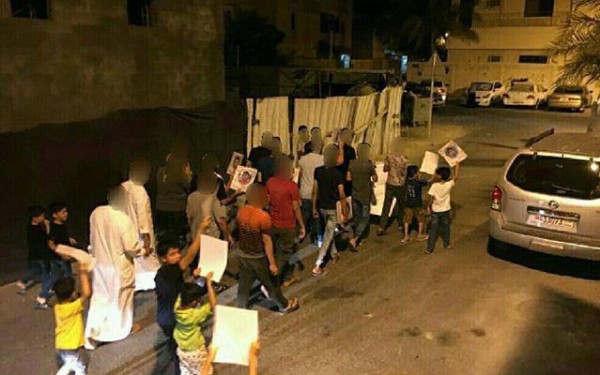 ورفع المتظاهرون شعارات مناهضة للنظام ومطالبة بوضع حد لتمادي قوات الأمن في اعتقال الأطفال، وإنهاء نفوذ أسرة آل خليفة.