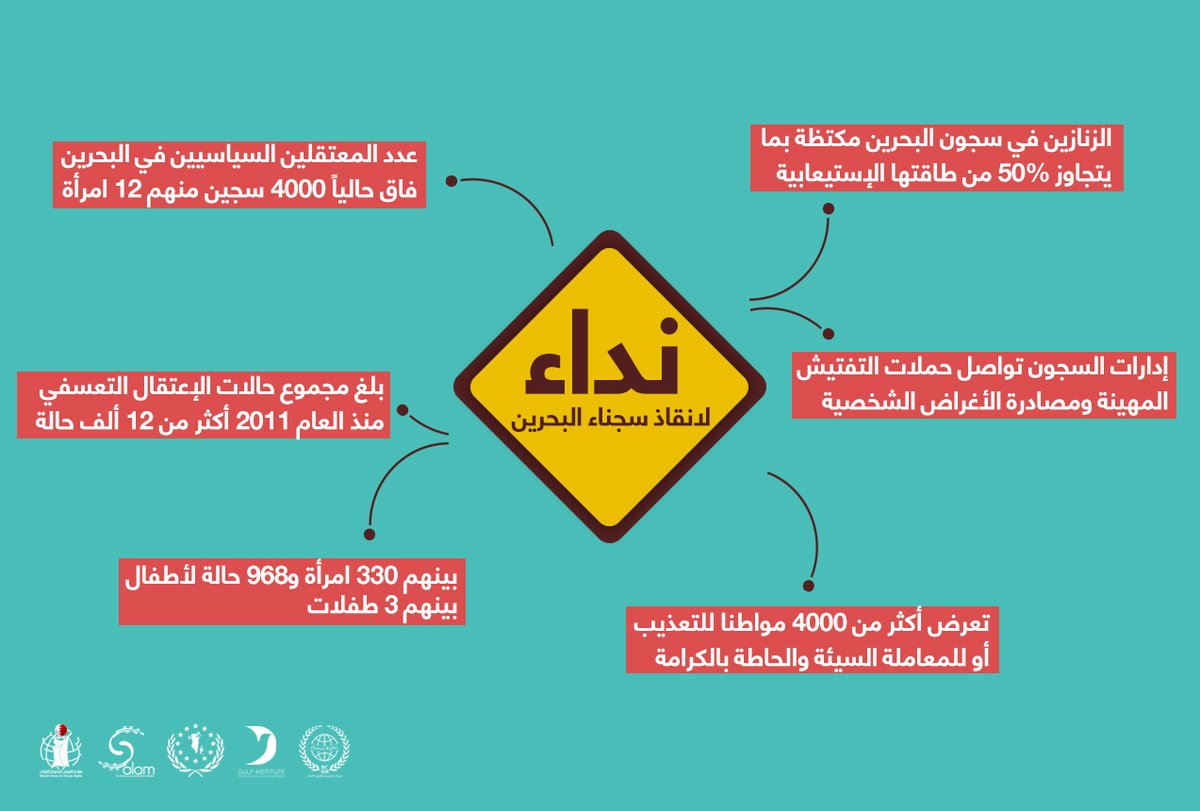 يقبع في سجون النظام البحريني أكثر من 12 ألف سجين بينهم 330 امرأة و968 طفلا بينهم 3 طفلات.
