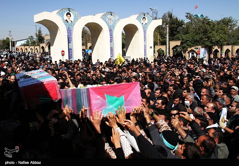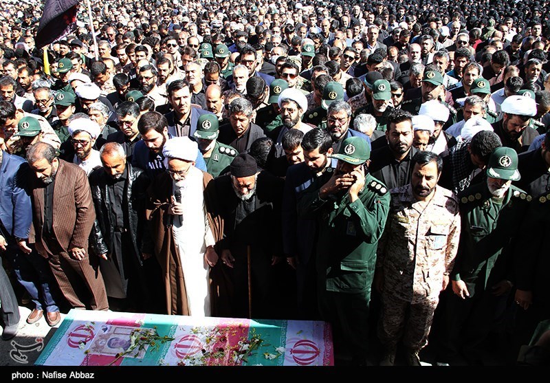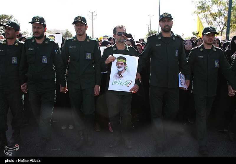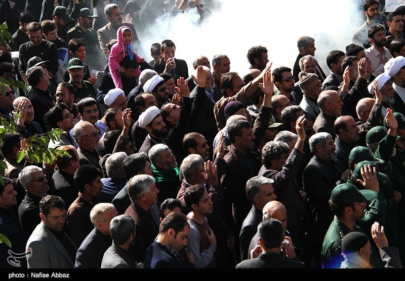 شيع مئات الآلاف بمدينة آراك (وسط ايران) جثمان الشهيد عبد الله خسروي القيادي بحرس الثورة والذي استشهد قبل اربعة ايام في سوريا.