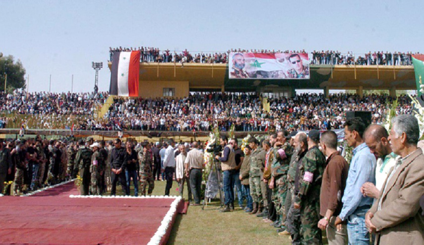 وشارك في مراسم التشييع التي اقيمت في الملعب البلدي في السويداء، الاف السوريين وعدد كبير من كبار المسؤولين السوريين، من بينهم أعضاء مجلس الشعب والمحافظين والوزراء وشيوخ عقل طائفة المسلمين الموحدين وضباط من الجيش العربي السوري وفعاليات دينية وحزبية وشعبية. ومثل الرئيس السوري بشار الأسد، وزير شؤون الرئاسة، منصور عزام، وقدم التعازي لأبناء سوريا وذوي الشهيد باستشهاد البطل زهر الدين بعد أن سطر ملاحم البطولة والصمود والتضحية دفاعا عن الوطن. من جانبه هنأ مفتي الجمهورية الشيخ أحمد بدر الدين حسون أهالي السويداء والسوريين جميعا بشهادة البطل زهر الدين في معارك البطولة بوجه الإرهاب في مدينة دير الزور، وأضاف "نقول لكل من أرادوا تفرقة سوريا أنه ليس بيننا أقلية فكل مواطن في سورية حقه حقنا وعليه ما علينا.. نتطهر بتربة وطننا ودماء شهدائنا"، وأشار المفتي حسون إلى أن "السوريين لا يبكون على الشهداء بل يباركون لهم الشهادة فأبطال الجيش العربي السوري يطهرون أرض سوريا بدمائهم الزكية من دنس الإرهاب". وكان اللواء شرف عصام زهر الدين ارتقى شهيدا يوم الاربعاء في منطقة حويجة صكر شرق مدينة دير الزور خلال عمليات الجيش السوري لاستكمال إعادة الأمن والاستقرار إلى محافظة دير الزور.