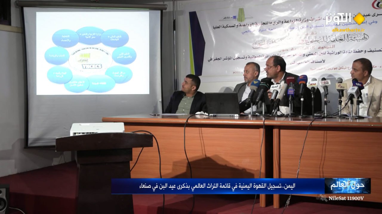 حول العالم- الکوثر: اقامت الهیئة العامة للبحوث و الارشاد الزراعیة ندوة تشاوریة تزامنا مع ذکرى عید البن تحت اشراف وزارة الزراعة و الري و اللجنة الزراعیة و السمکیة العلیا في صنعاء وذلك في اطار تدشین فعالیات تسجیل البن الیمني في قائمة التراث العالمي