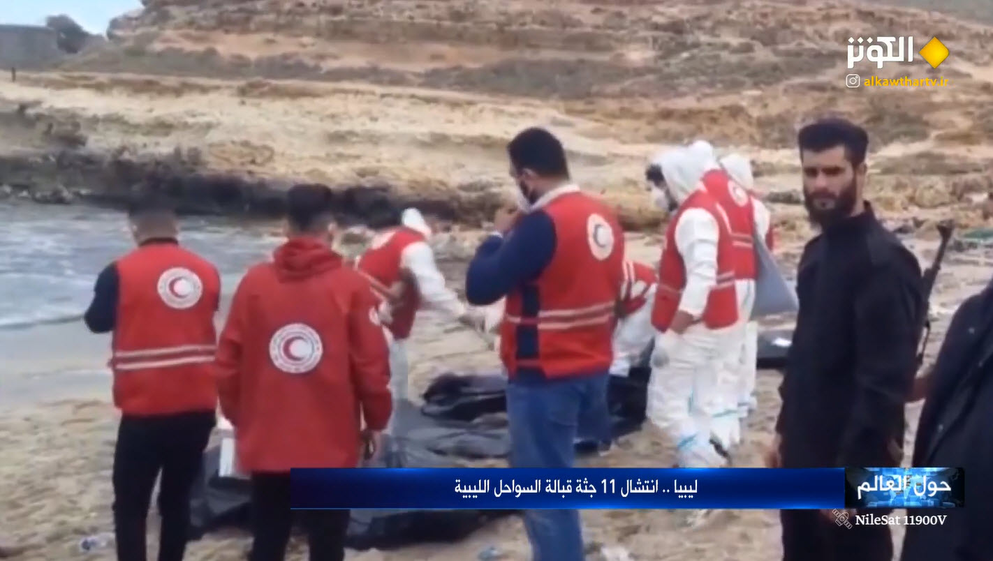 تقرير مصور عن انتشال الهلال الاحمر الليبي لـ 11 جثة قبالة السواحل الليبية.