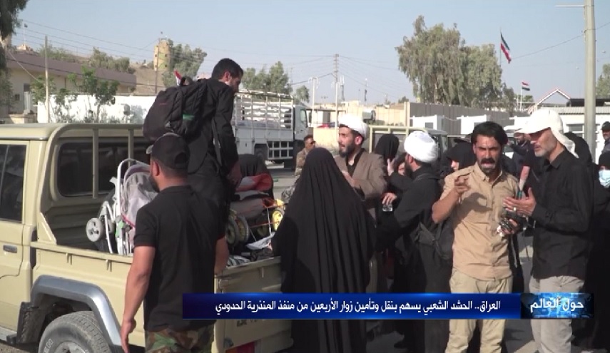 حول العالم_خاص الكوثر: الحشد الشعبي يسهم بنقل وتأمين زوار الاربعين من منفذ المنذرية الحدودي.