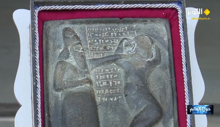 حول العالم_خاص الكوثر: سلمّ مركز حميميم المتحف الوطني في العاصمة السورية دمشق قطعة أثرية تعود للعصر الأشوري للألف الاول قبل الميلاد عثر عليها جنوب سوريا