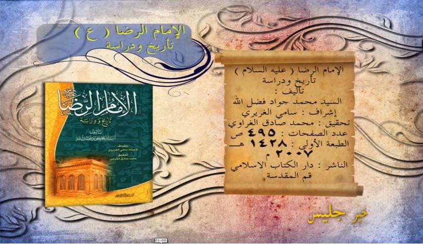 كتاب"الإمام الرضا (عليه السلام) تأريخ ودراسة" تأليف:السيد محمد جواد فضل الله إشراف: سامي الغريري