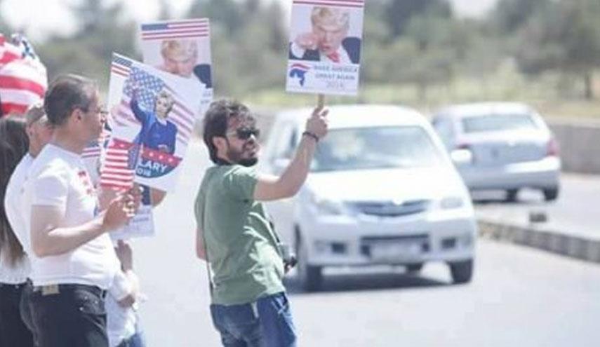 انتشرت في وسائل التواصل الاجتماعي صورة تظهر مجموعة من الأشخاص يحملون أعلاما أمريكية في منطقة يعفور بريف دمشق وسط هتافات للرئيس الأمريكي دونالد ترامب.