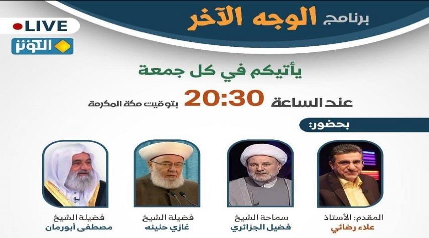 الوجه الاخر - خاص الكوثر سيبحث البرنامج الحواري "الوجه الاخر" الليلة موضوع " "التطرف التکفیری، الجذور ، النتائج ، العلاج "، مع كوكبة من العلماء والمفكرين.