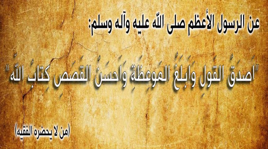 قال رسول الله صلى الله عليه وآله وسلم :أصدَقُ القَولِ و َاَبلَغُ المَوعِظَةِ و َاَحسَنُ القَصَصِ كِتابُ اللّه