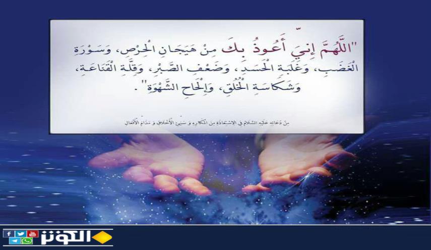 اللهم إني أعوذ بك من هيجان الحرص وسورة الغضب وغلبة الحسد وضعف البصر وقلة القناعة وشكاسة الخلق وإلحاح الشهوة