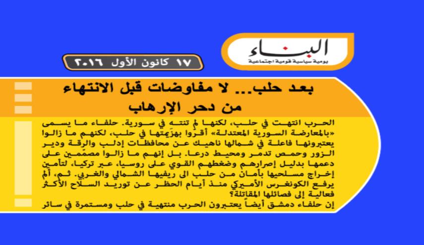 بعد حلب... لا مفاوضات قبل الانتهاء من دحر الإرهاب