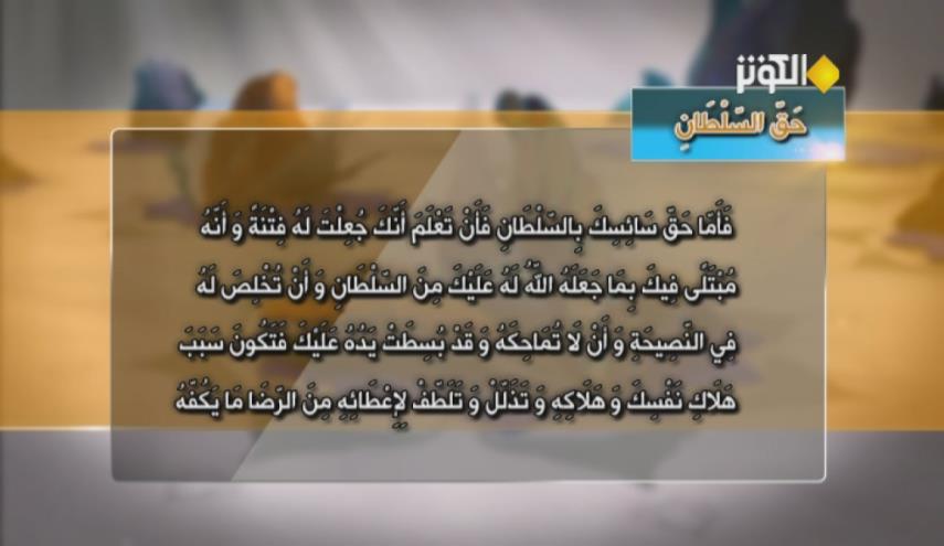 بيان "حق السلطان" من رسالة الحقوق للإمام علي بن الحسين زين العابدين عليه السلام.