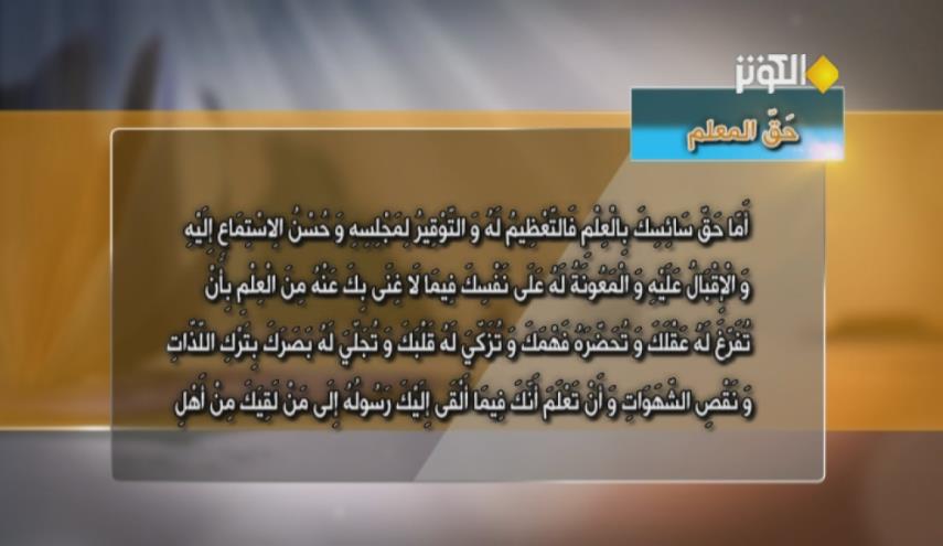 بيان "حق المعلم" من رسالة الحقوق للإمام علي بن الحسين زين العابدين عليه السلام.