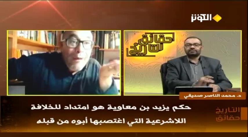 حقائق التاريخ - خاص الكوثر: بين أستاذ التاريخ محمد الناصر صديقي من تونس في برنامج حقائق التاريخ على قناة الكوثر الفضائية حقيقة الخلافة اللاشرعية ليزيد بن معاوية وكيف أنها امتداد للخلافة التي اغتصبها أبوه معاوية من قبل .
