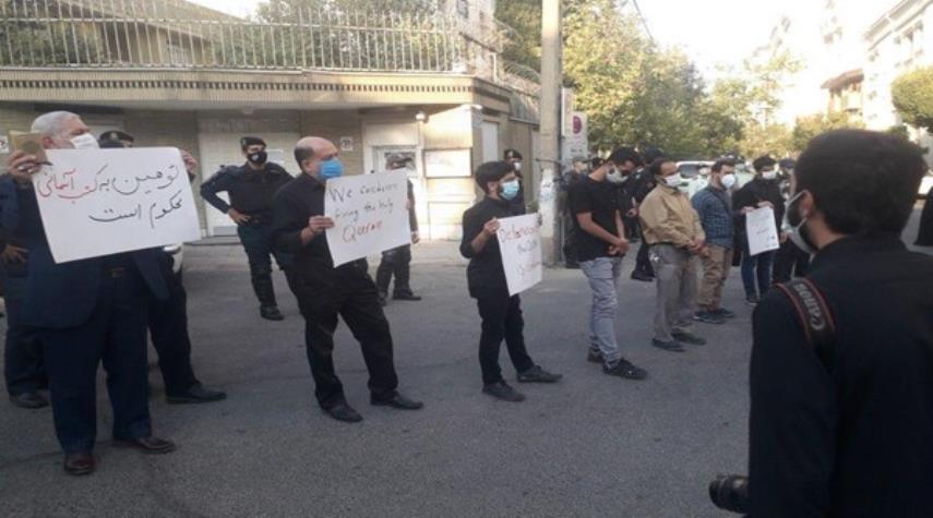 تجمع امام السفارة السويدية بطهران احتجاجا على انتهاك حرمة القرآن