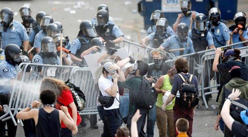 بالفيديو.. اشتباكات عنيفة بين المتظاهرين وقوات الامن الامريكية