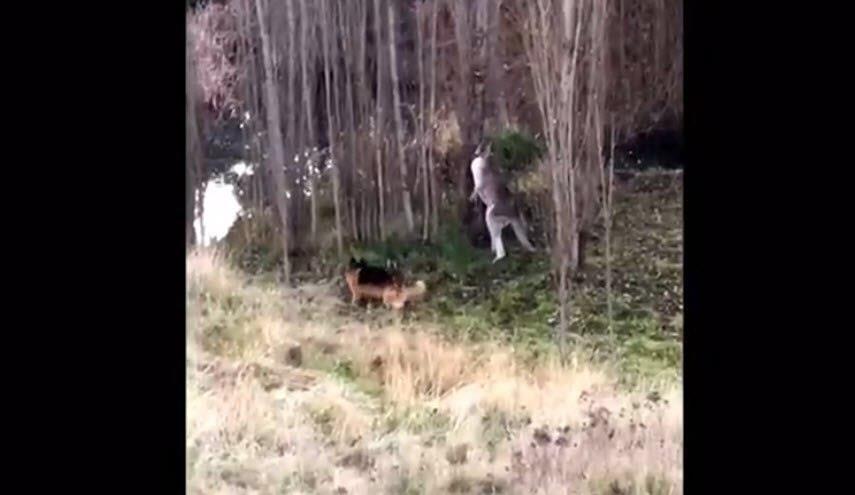 المعارك بين الحيوانات أمر طبيعي إما من أجل البقاء أو المنافسة، وعندما تشتد المعركة يصبح من الصعب التخمين من الفائز، خاصة عندما تندلع بين كنغر وكلب شيبرد.