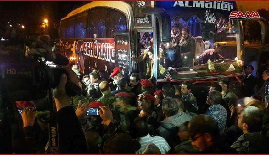سوريا ـ الكوثر: خروج حافلتين تقلان كامل المختطفين المحررين من مدينة دوما، بعد أن أكد مصدر رسمي سوري أن جميع المخطوفين في دوما سيتم إطلاق سراحهم ليل الإثنين، في حين يتواصل إخراج مسلّحي “جيش الإسلام” من المدينة مع عوائلهم إلى الشمال السوري.