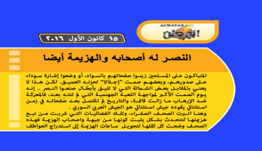 الحلقة تضم العديد من العناوين الرئيسية ابرزها (ارث اوباما بحجم كرة الغولف وعظمة امريكا تبدأ من شرق عظيم ،مرورا بالآراء والتحليلات التي تصدرها عنوان (بعد تحرير الموصل...هل ينتهي داعش في العراق؟)..اما في شؤون دينية فجاءت رسالة قائد الثورة الاسلامية الامام الخامنئي دام ظله الى الجمعيات الاسلامية للطلبة في اوروبا .