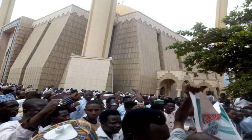 نيجريا - الكوثر : خرجت مسيرات احتجاجية في مسجد النور في العاصمة النيجيرية أبوجا للمطالبة بالإفراج عن زعيم الحركة الإسلامية الشيخ إبراهيم الزكزاكي بعد صلاة الجمعة.