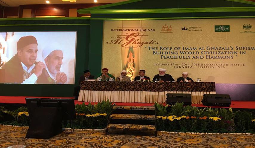جاكرتا _ الكوثر: عقد في جاكرتا عاصمة اندونيسيا يومي 19 و20 جانفي المؤتمر العالمي حول تصوف الإمام الغزالي: دور تصوف الإمام الغزالي في تطوير الحضارة العالمية القائمة على السلام والوئام"، من تنظيم جمعية الطريقة المعتبرة النهضية، ومؤسسة أمانة كيتا والجامعة الإسلامية الشافعية، بمشاركة مشايخ وعلماء ومفكرين من اندونيسيا، الولايات المتحدة،روسيا، الصين، سوريا، إيران، ومن المغرب وتونس.