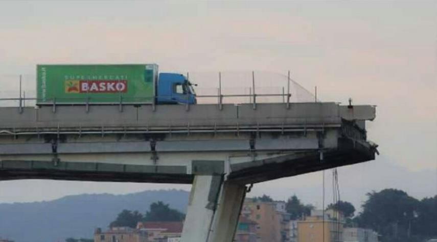 منوعات _ الكوثر: تداولت مواقع التواصل الاجتماعي صورة مثيرة لسائق شاحنة "محظوظ"، بعد حادث انهيار جسر يمثل جزءا من طريق سريع في مدينة جنوى الإيطالية، الثلاثاء أسفر عن مقتل أكثر من 30 شخصا.