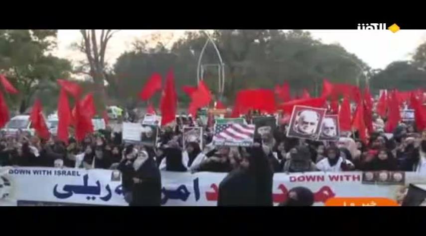 بالفيديو..الشعب الباكستاني ينتقم للشهيد سليماني ويرفع شعارات "الموت لأمريكا"