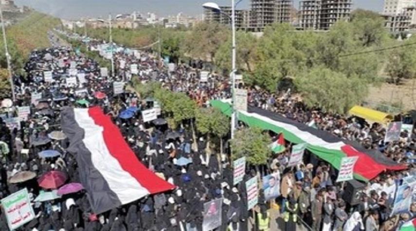 خرجت الملايين اليمنية إلى الساحات والميادين تلبية لنداء قائد حركة أنصار الله السيد عبد الملك الحوثي، لتعلن تجديد التفويض لقيادة القوات المسلّحة للمضي قدماً بلا تردّد في ردع كيان الاحتلال عن مواصلة الحرب المجرمة على غزة والغارات العدوانية على اليمن، وكانت الشعارات التي تردّدت في التظاهرات، تدعو إلى مواجهة بلا سقوف وبلا خطوط حمراء.