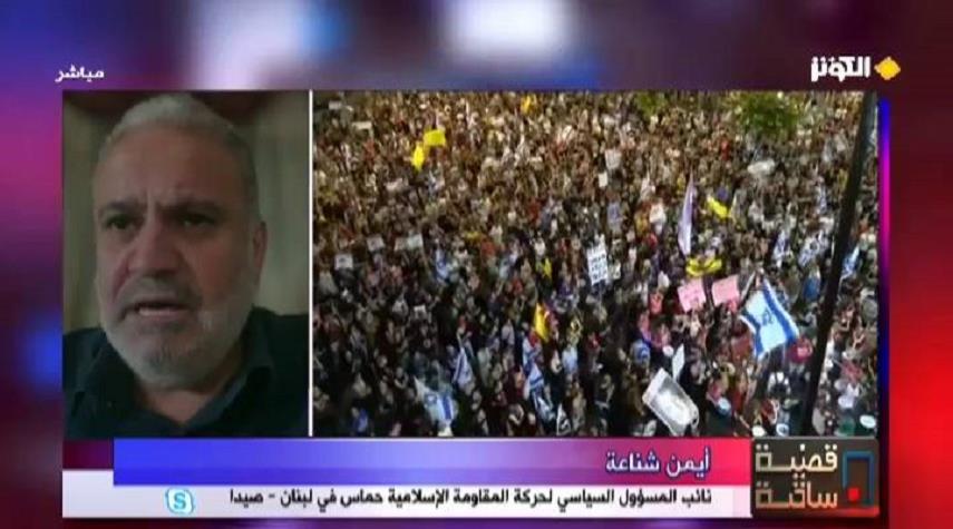تحدث نائب المسؤول السياسي لحركة المقاومة الاسلامية حماس في لبنان أيمن شناعة امس الخميس خلال مشاركته في برنامج قضية ساخنة عن الرد الايراني..وإنهيار الكيان أمام الحرب النفسية"