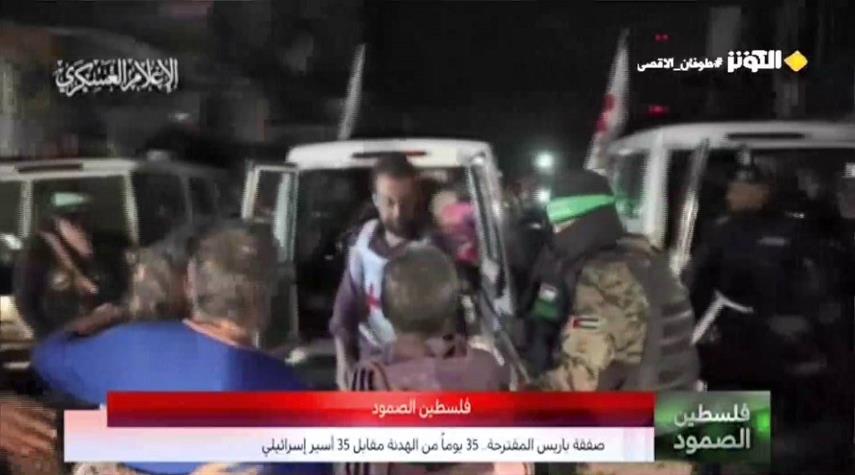 صفقة باريس لوقف اطلاق النار وتبادل الأسرى تضمنتبحسب مصادر صهيونية اطلاق سراح 35 أسيراً اسرائيلياً على قيد الحياة من النساء والجرحى وكبار السن مقابل هدنة مدتها 35 يوماً،أي يوم واحد من الهدنة لكل أسير احتجزته المقاومة في عملية طوفان الأقصى في السابع من اكتوبر الماضي.