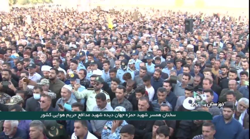 اليكم ما قالته زوجة الشهيد الايراني حمزة جهان ديده في مراسم تشييعه
