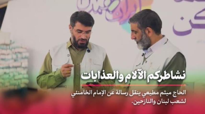 "نشاطركم الآلام والعذابات "الحاج ميثم مطيعي ينقل رسالة عن الإمام الخامنئي لشعب لبنان والنازحين.