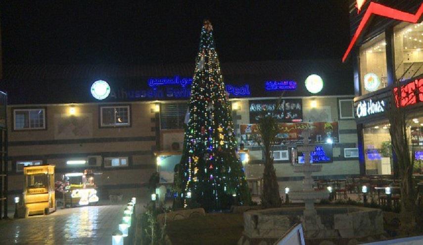 العراق_الكوثر: لاول مرة تشهد محافظة كربلاء، نصب شجرة لعيد الميلاد في منتجع وسطها.