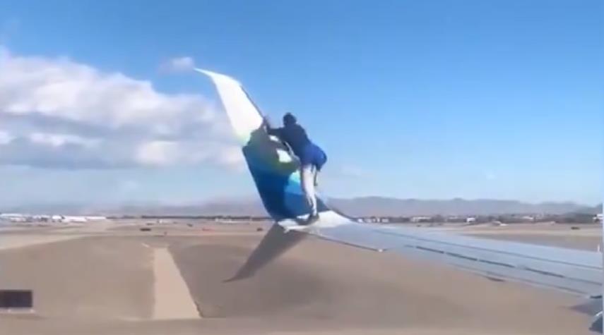واقعة غريبة .. رجل يسير فوق جناح طائرة (شاهد الفيديو)