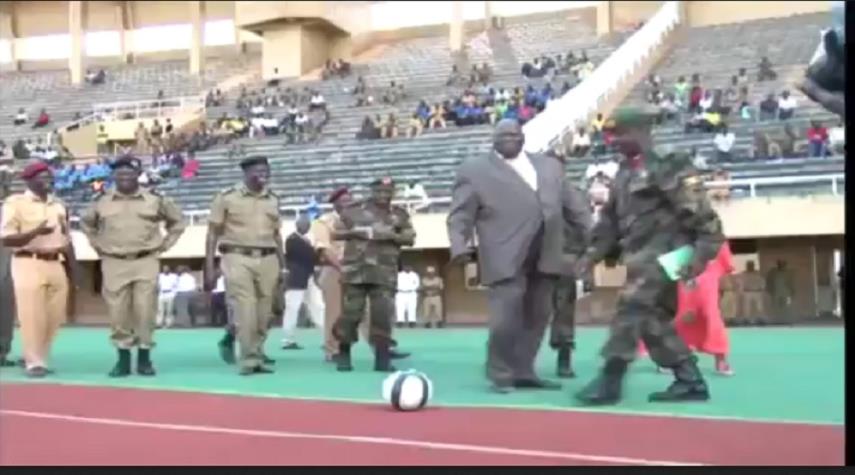 منوعات_الكوثر:تداول عشاق كرة القدم ورواد مواقع التواصل الاجتماعي فيديو، يظهر فيه السياسي الأوغندي والجنرال المتقاعد موسيس علي أثناء تعرضه لموقف محرج خلال مباراة لكرة القدم.