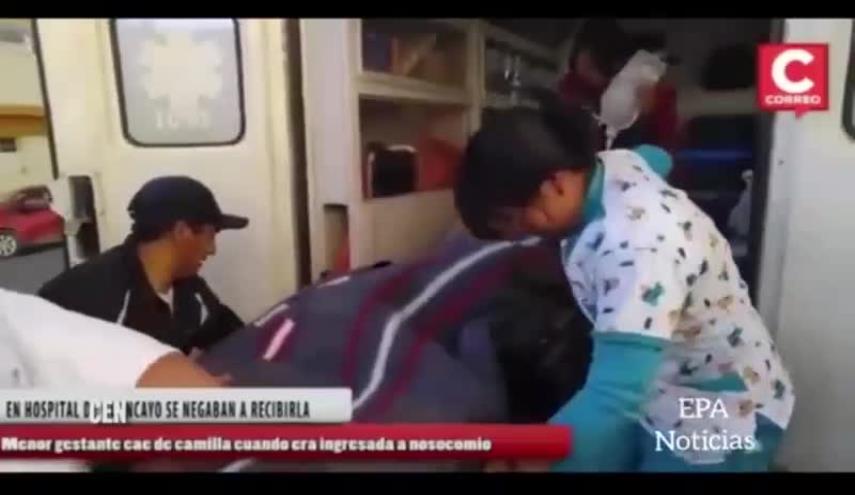 انتشر مقطع فيديو للحظة سقوط شابة حامل مرتين عندما حاول المسعفون إخراجها من سيارة إسعاف.