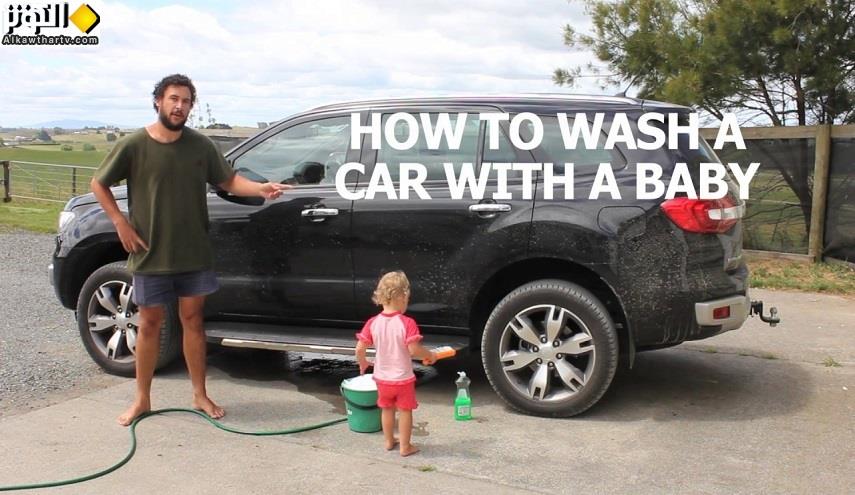 شاهد .... كل ما تحتاجه لتنظيف السيارة.. ماء وصابون وطفل!