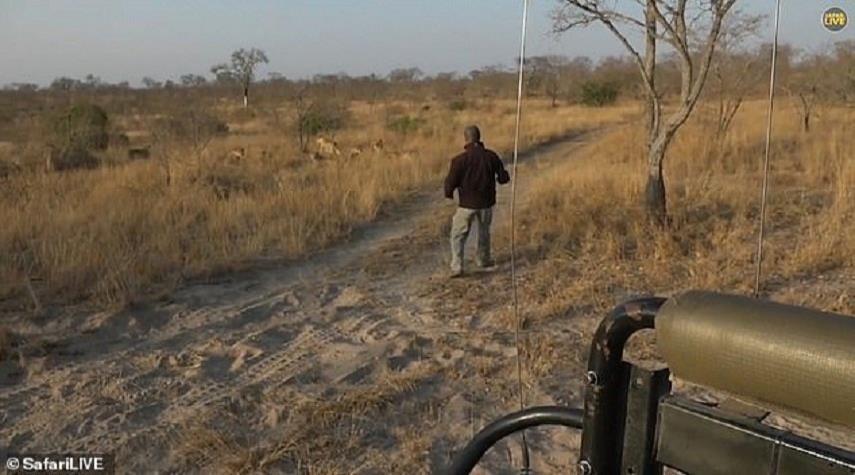 شاهد بالفيديو... مفاجأة غير متوقعة لرجل يتتبع أسد