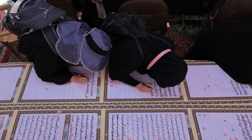 شاهد.. خط أطول مصحف بأيدي الزائرين ضمن فعاليات زيارة الأربعين