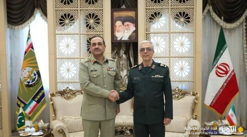 أكد رئيس الأركان العامة للقوات المسلحة الإيرانية، خلال لقائه قائد الجيش الباكستاني، إن "قوات البلدين لديها عزم راسخ للقضاء على الإرهاب على جانبي الحدود".