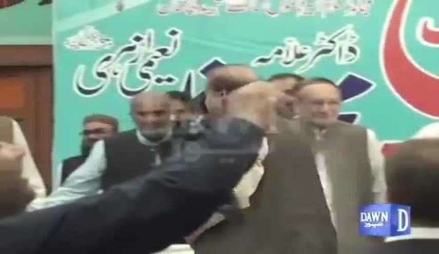 بالفيديو.. حذاء يصيب رئيس وزراء باكستان السابق!