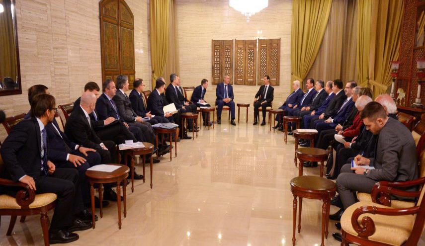 سوريا _ الكوثر: استقبل الرئيس السوري بشار الأسد وفدا حكوميا واقتصاديا من جمهورية روسيا الاتحادية برئاسة ديمتري روغوزين نائب رئيس الوزراء.